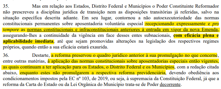Segundo o dispositivo, em tese, se aplicariam as regras “pré-reforma” nos Estados e Municípios, até que estes façam suas próprias reformas.