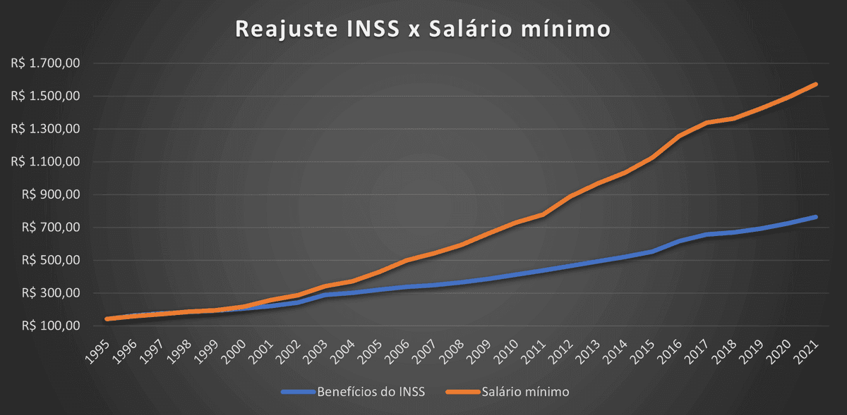 Confira abaixo a diferença dos 2 reajustes desde 1995: