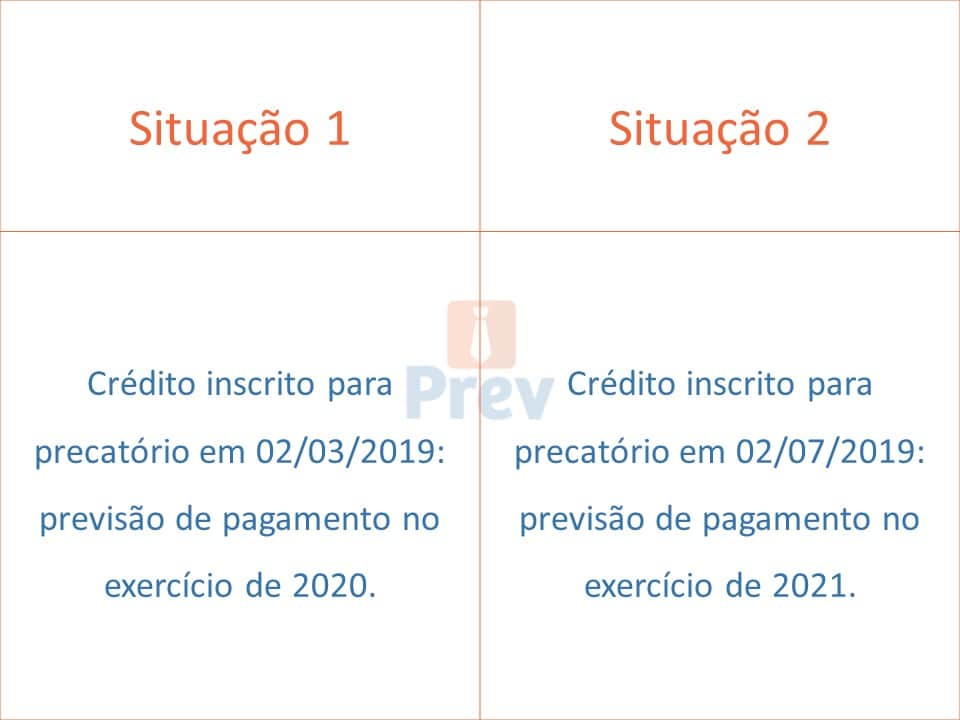 Com efeito, os crédito devem ser inscritos até o dia 1ª de julho de cada ano para poderem ser incluídos na proposta orçamentária e, então, pagos no ano seguinte. Veja-se alguns exemplos:
