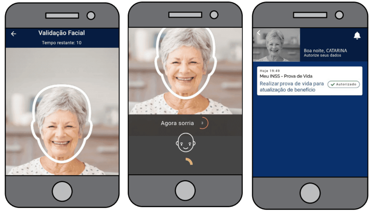Por outro lado, temos uma opção ainda em fase de testes. Se trata da prova de vida por biometria facial, que utiliza dados do DENATRAN e do TSE.