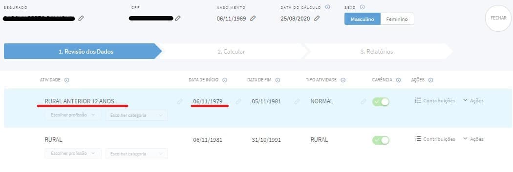 O cálculo desse tipo de revisão é muito simples! Basta acrescentar ao tempo total de contribuição o novo período de atividade rural anterior aos 12 anos. Veja: