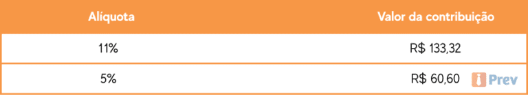 Por outro lado, para quem contribui pelas alíquotas reduzidas de 11% e 5% sobre o salário mínimo, os valores serão os seguintes: