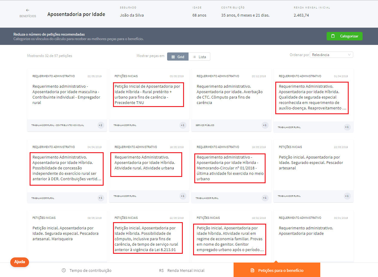 Pronto! Ao selecionar o filtro, o sistema já retornará também modelos de aposentadoria por idade híbrida para você utilizar no seu caso!