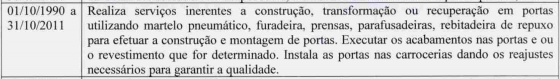 Na hipótese vertente, no período controverso de 06-03-1997 a 18-11-2003 o autor laborou na empresa Carrocerias Linshalm Ltda, exercendo a atividade de Montador/Operador de Porta, setor Porta Traseira/Lateral.