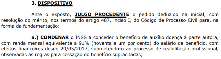 Teve a bem o Juízo a quo julgar procedente o pedido entendendo que a parte autora tem jus ao benefício de auxílio-doença. No entanto, adversa a Autarquia Previdenciária a condenação em proceder à reabilitação da autora: