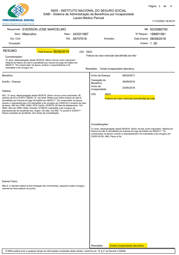 Com efeito, a data da perícia é uma ficção que recorre à variável menos provável. O momento da perícia é o momento do diagnóstico e, dificilmente, exceto uma infeliz coincidência, a data da instalação da doença e provável incapacitação. Quando se recorre às ficções, por que não é possível precisar a data da incapacidade a partir de elementos outros, sobretudo os clínicos-médicos, é preciso levar em conta em mínimo de realidade, e esta indica a relativa improvabilidade do marco aleatório. O histórico médico e outros elementos contidos nos autos, inclusa a DER e as regras da experiência sobre a evolução no tempo de doenças, devem se sobrepor às ficções, notadamente aquelas que se estabelecem in malan parte, consoante inúmeros julgados deste Colegiado: