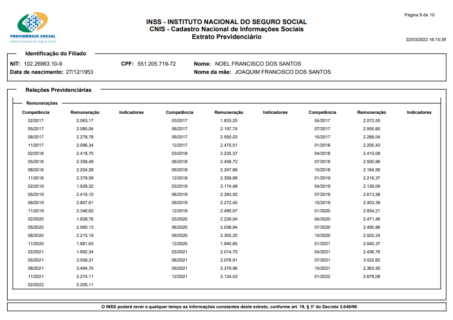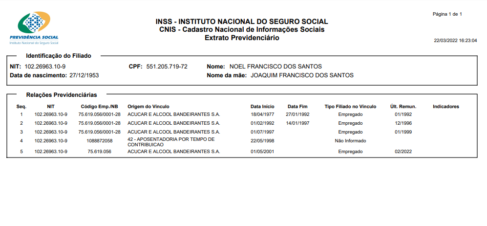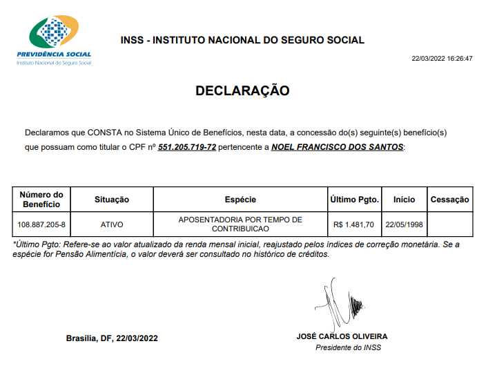 Não se pode olvidar de que o Sr. Noel também percebe benefício de aposentadoria por tempo de contribuição.