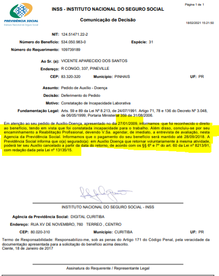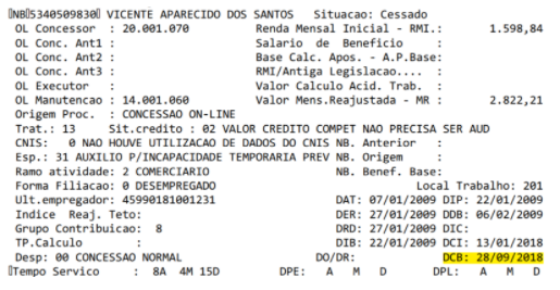 Como se vê abaixo, o benefício do impetrante foi cessado em 28/09/2018: (SENT, ev. 16):